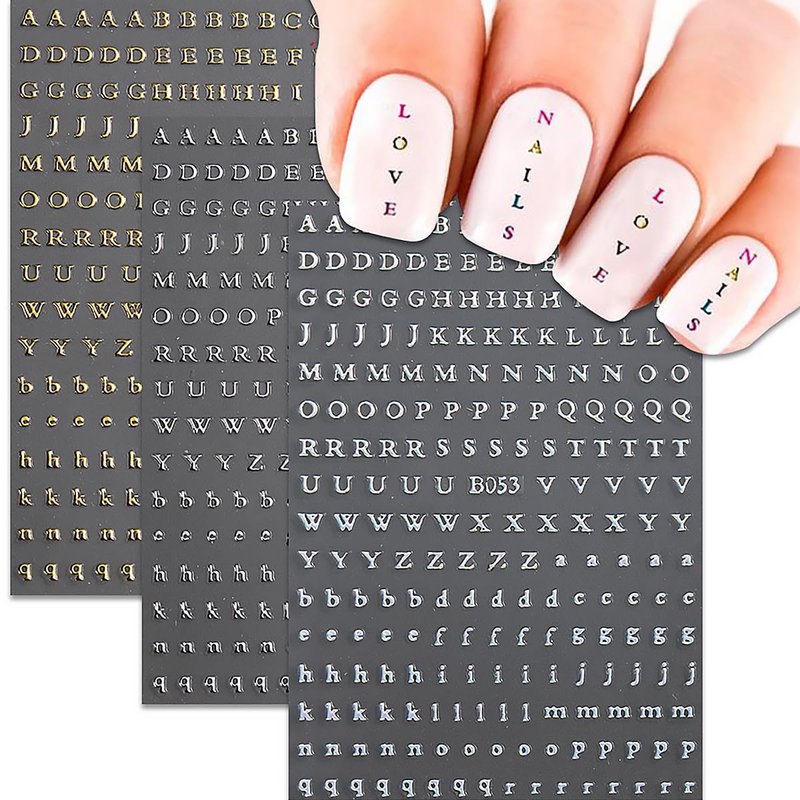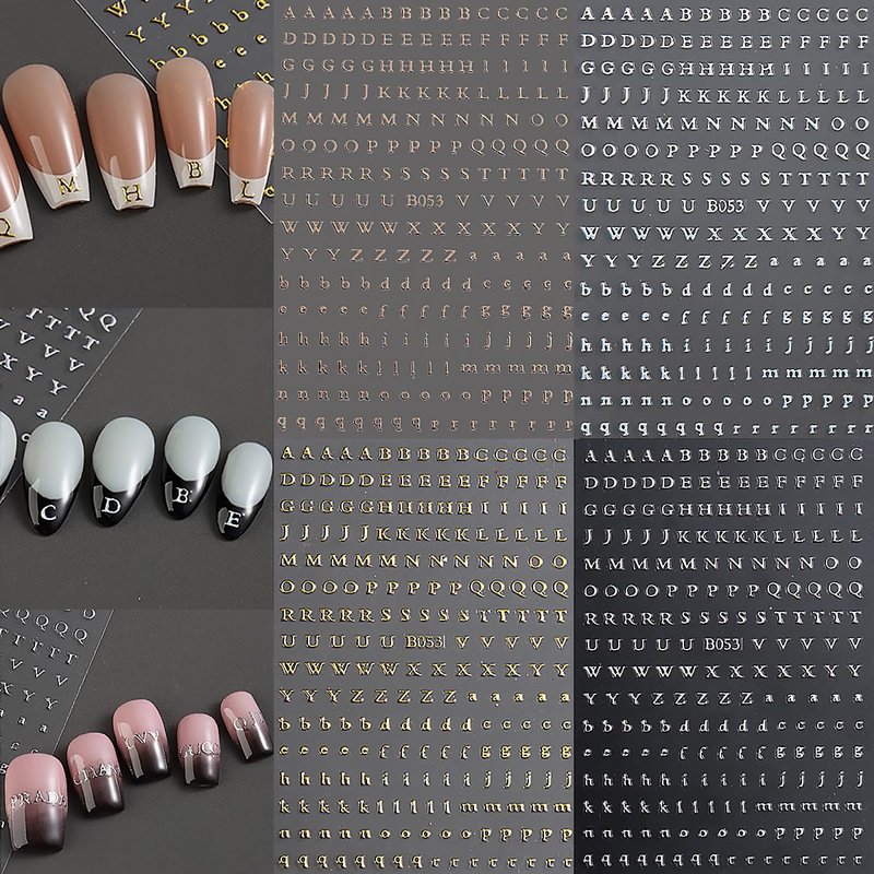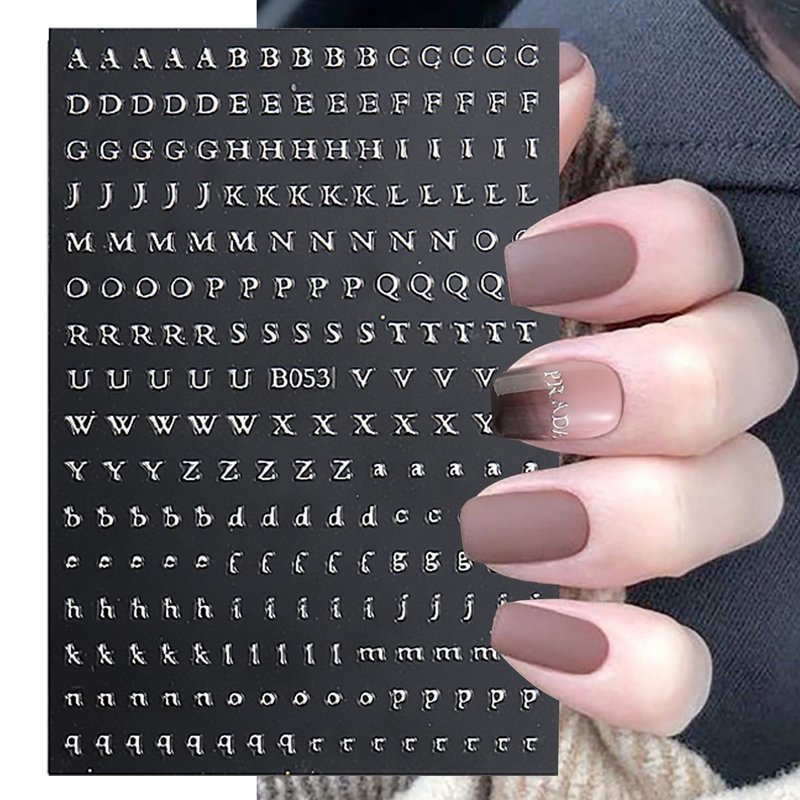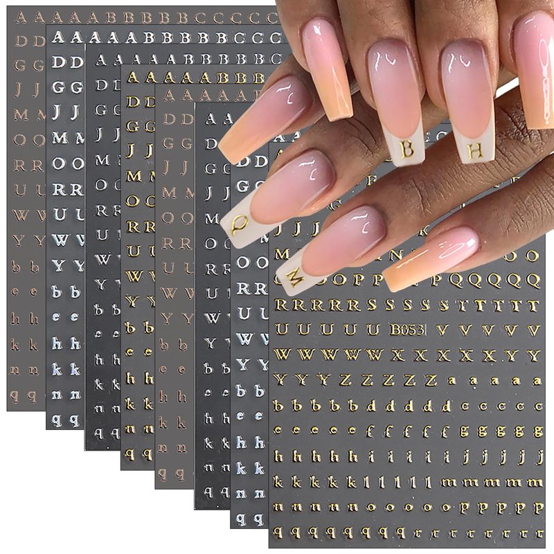 8 Sheets Letter Nail Stickers 3D Self-Adhesive ...