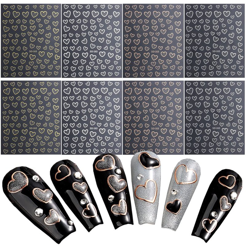 - Heart Design: 8 sheets 3d self-adhesive nail stickers, Gold Silver Rose Gold White Nail Decals, bring you more nail DIY choices.