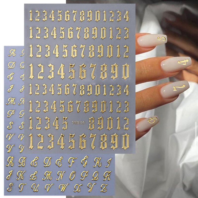 - Letter Sticker for Nail Art: You will get 8 sheets letter & numbers nail art stickers decals, old English nail designs decoration, It provides you with a variety of options to give full play to your rich imagination of nail DIY.