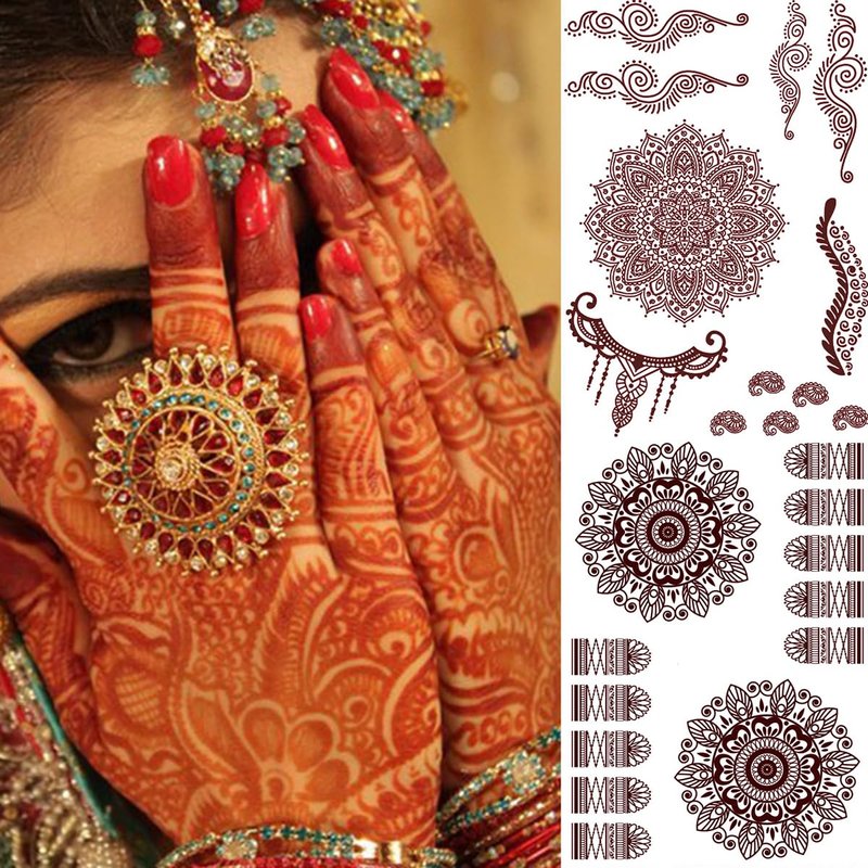 Brown Indian henna waterproof temporary hand tattoo stickers Beach holiday party body decoration supplies