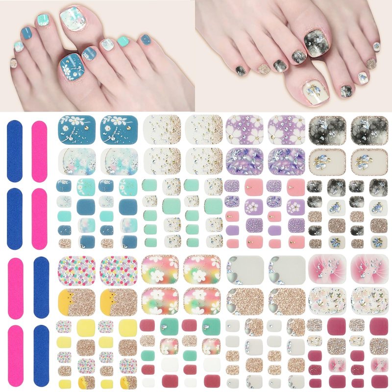 - Nice Combination: You will receive 8 sheets colorful flower toenail polish stickers in various colors and 8 piece nail file, a nice combination to meet your decorating needs, suitable for making different combinations and nail art styles, there are different size choices, appropriate for most nails, and there is always a size that is suitable for you.
