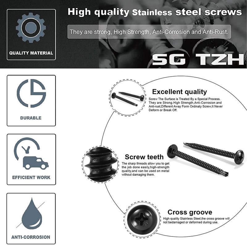 - RUGGED AND DURABLE - SG TZH Sheet Metal Screws made of high-quality 410 Stainless Steel,which has higher corrosion resistance and anti-rust effect than ordinary screws, longer service life, not easy to damage, more solid.(TIPS: They are stainless 410 Stainless so they are also still magnetic. )