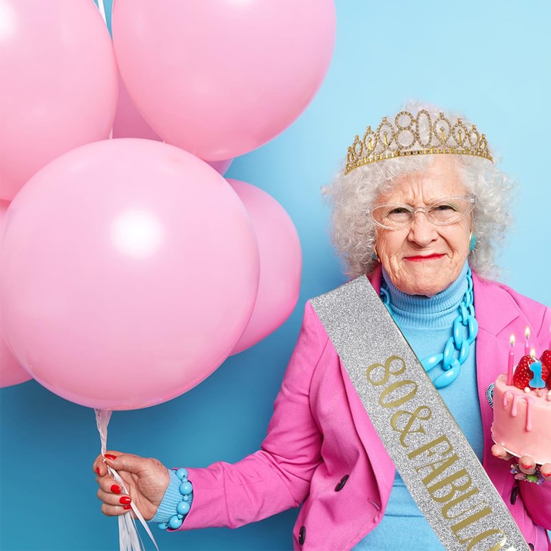 - 【80th Birthday Gifts for Women】80th is not younger anymore, pick a youthful gift to make them happy and leave a wonderful record; I'm sure she'll be happy; the crown and birthday sash, just to meet these, believe us this is an excellent gift choice for the 80-year-old woman; she will be happy to wear this during her big day;