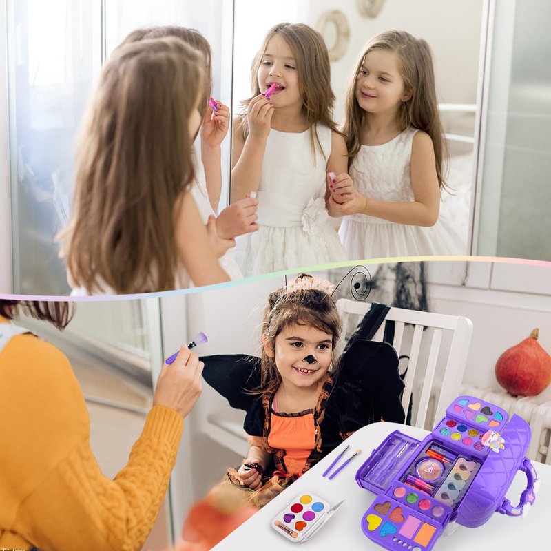 - š¦ćSkin-Friendly Kids Makeup Sets for GirlsćOur makeup kit is made from CPSIA certified skin-friendly materials, ensuring Skin-Friendly to your child. It can be easily washed off with water after use.The brush slot design facilitates your makeup while providing a mess-free experience