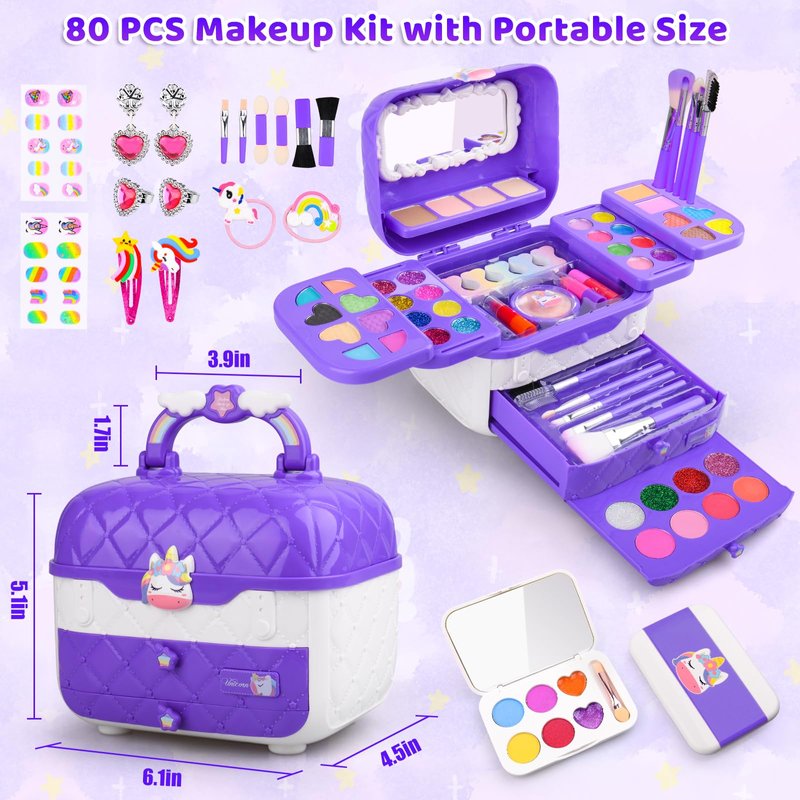 80 in 1 Kids Makeup Kit for Girls, Washable Kids Makeup Sets Girls Toys, Pretend Play Makeup Set Toy for Dress Up with Makeup Case Christmas & Birthday Gifts for Girls Age 3-12 Kids Toddlers, Purple