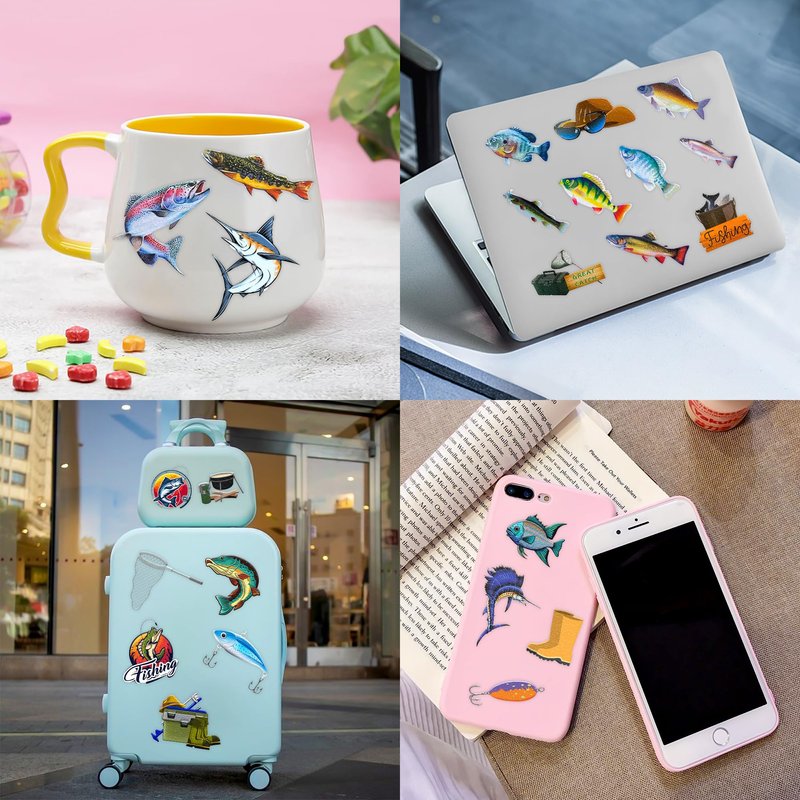 - 🐟TATTOOS FOR FISHING FISH THEMED DECORATION: FISHING FISH TATTOOS for people who love fish, fishing. Featuring 8 sheets with 80 pcs of lovely, fun and colorful design. Each sheet measures 6.1 * 3.1 inches. You can temporarily tattoo them on your body or objects such as phones, bottles, laptop…