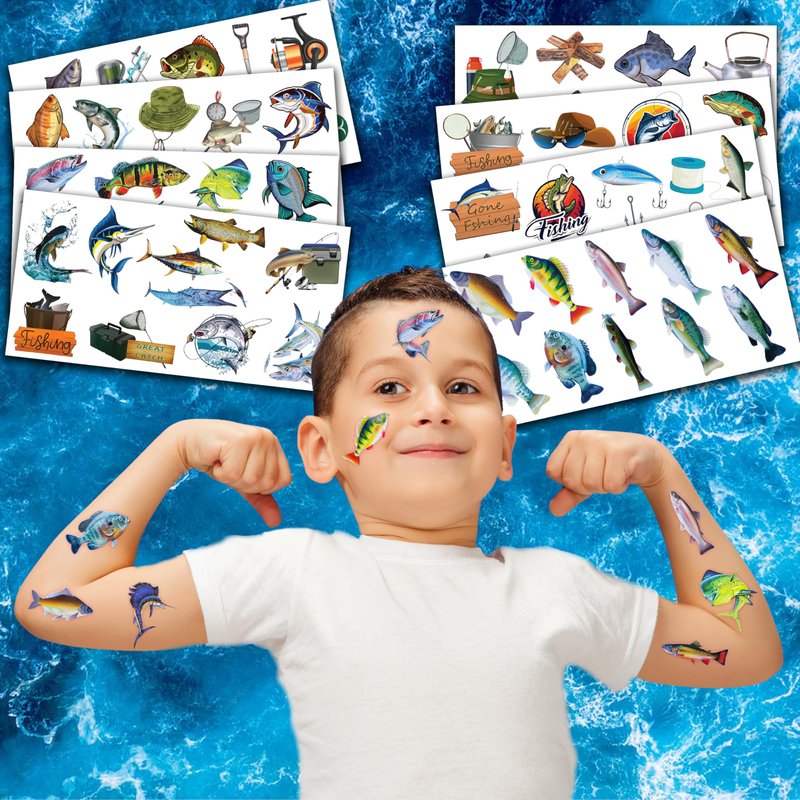 - 🐟 FUN GIFT FOR FISHING FISH BIRTHDAY PARTY DECORATIONS SUPPLIES: FISHING FISH TATTOOS for themed party, outdoor parties, birthday parties, school rewards and other party events. In addition, they help children recognize fish. FISHING FISH TATTOOS are also interesting and lovely gifts for your children. Complement your unique collection with a fishing tattoo!