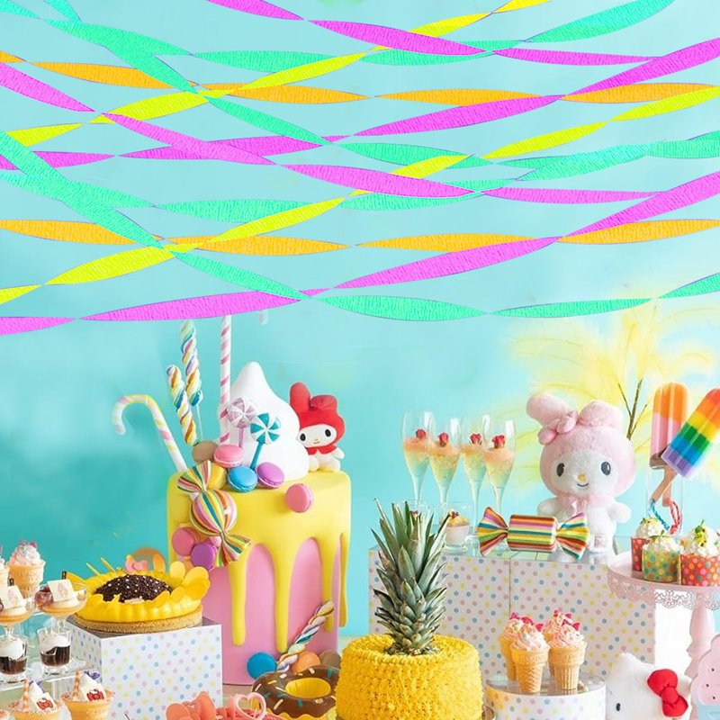 - 【All OCCASIONS 】Our luminous Crepe Paper Streamers perfect for blacklight dark glow party decorations, they will glow in the black light,birthday party,anniversary,festival celebrations, blacklight party.which is very suitable for your neon theme or luminous birthday party.