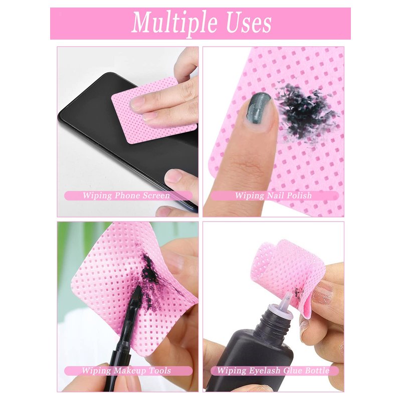 - Lint Free Nail Wipes: You will get 800 pcs pink eyelash glue wipes in 4 dust-proof plastic boxes for easy and clean use. NOTE: These wipes are DRY.