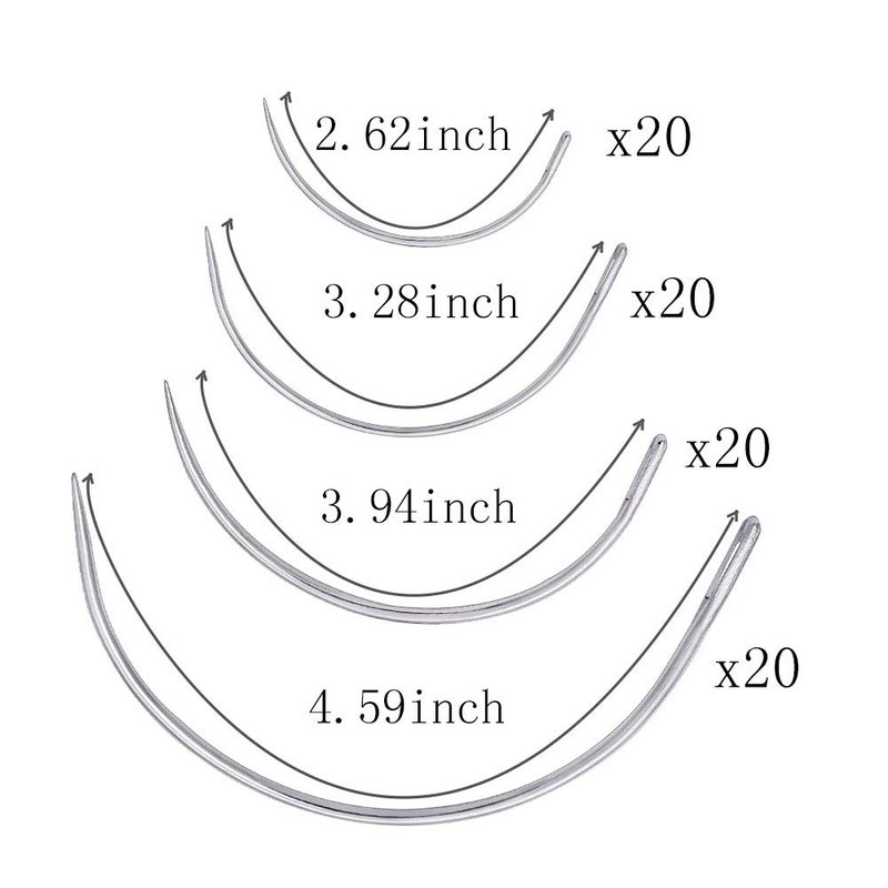 C Shape Curved Needles: 80 pieces C type weaving needle in 4 sizes (20PCS/SIZE), packed in two plastic box for easy storage.