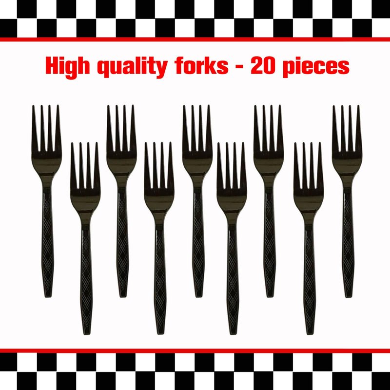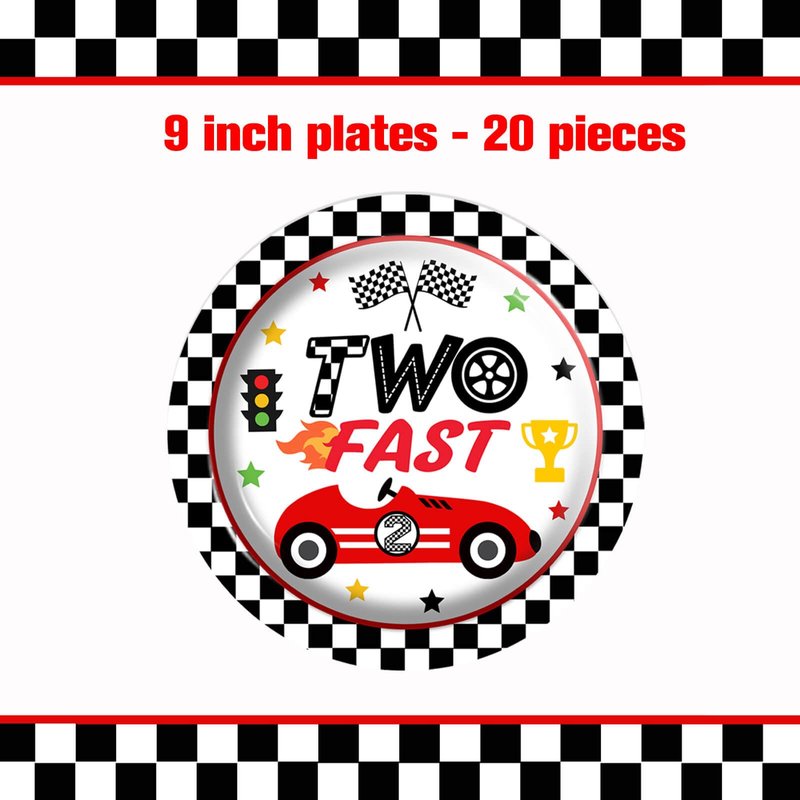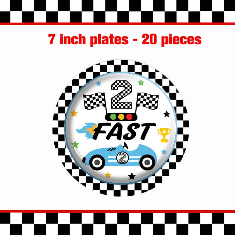 - 【Kit for 20 guests】80 pieces of race car theme tableware kit, including 20 pieces of 9-inch dessert plates, 20 pieces of 7-inch dessert plates, 20 pieces of napkins, and 20 pieces of forks.
