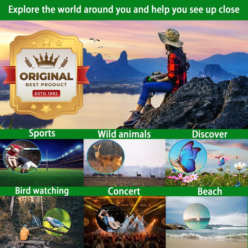 - 【18 mm Extra Large Eyepiece, More Detail, Clearer and Brighter】Equipped with an over sized 18 mm eyepiece, this handheld monocular offers you a comfortable viewing experience. Including the BAK4 prism, all the lenses are fully multi-layer coated to reduce light loss by 99.99%, providing you with a brighter picture.