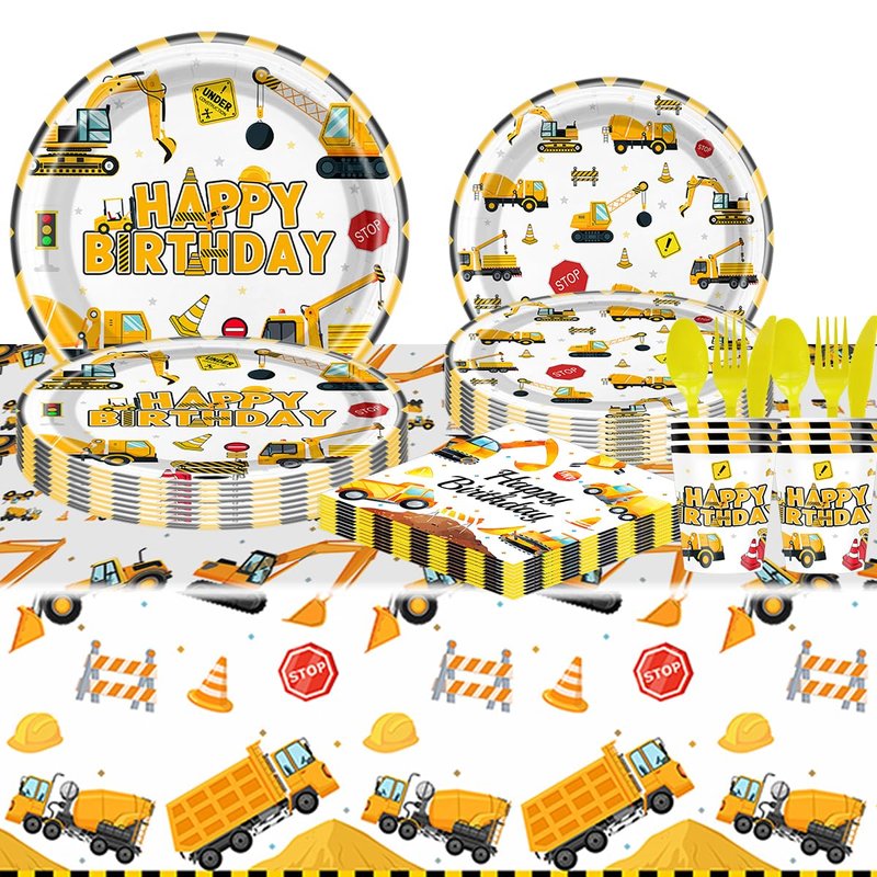 - Comprehensive Party Set: This 81-piece construction-themed tableware set includes plates, cups, napkins, and more for a fun construction birthday celebration.