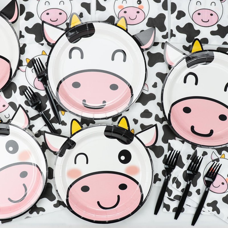 - Unique Cow Shape Design: The cow theme party supplies are designed with 2 cow shape party plates, these cute cow shape plates would be a big hit at your party. Except that, the cow theme tablecloth, and napkin have been printed with adorable cow patterns. These cow theme birthday party supplies will be great additions to your kid's birthday party, or farm animal party, could create a happy festival atmosphere easily, and make an impression on your guests.