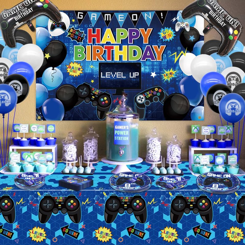- Great Video Game Party Supplies: This party package is specially designed for 8th video game themed party. Decorating your party with this set, looks cool and eye-catching, easy to create a cheerful and exciting party atmosphere and leave an unforgettable with your friends and family.