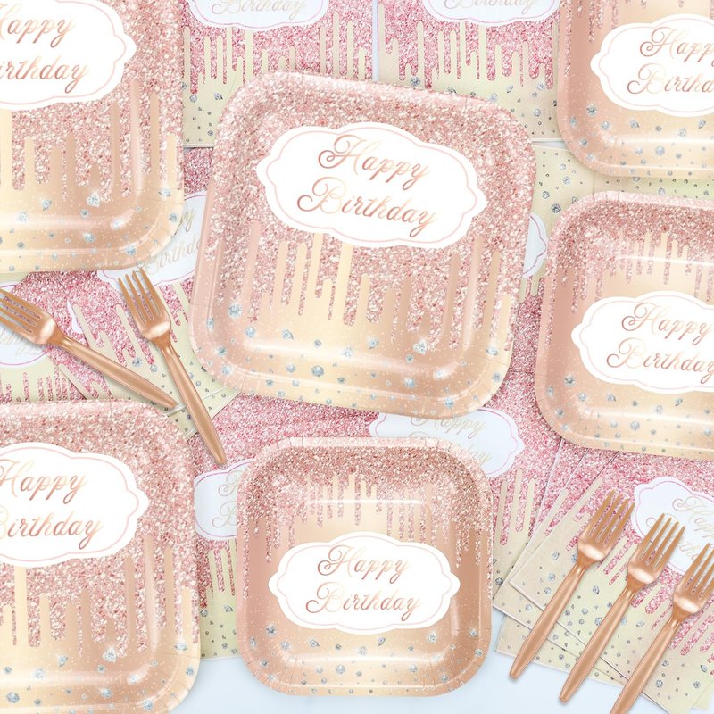 If you want to purchase a birthday party package for your girl, don’t miss this high-quality, durable rose gold tableware set!