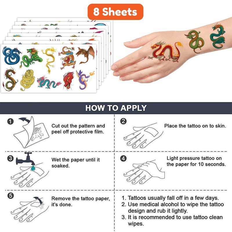 - 🐲DRAGON PARTY FAVORS: Our temporary tattoos feature DRAGON elements that blend Eastern legends with Western mythology. Ideal for children and adults who enjoy exploring DRAGON themes, kid's birthday parties, DRAGON-themed parties, pinata fillings, game prizes, classroom rewards, gift-back to school celebrations, and outdoor sports.