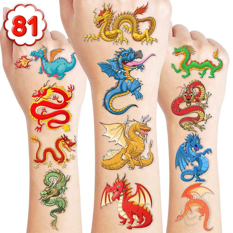 81PCS Dragon Temporary Tattoos Stickers Themed Birthday Party Decorations Supplies Favors Decor Cute Gifts for Kids Girls Women Adults Boys Classroom Prizes Rewards