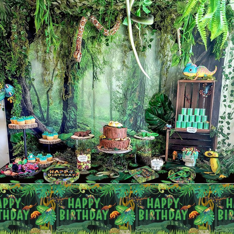 - High Quality - Reptile birthday plates and napkins are made of thick paper, lightweight, and safe. Tablecloth is made of PE, which is waterproof, durable, and stain-resistant.