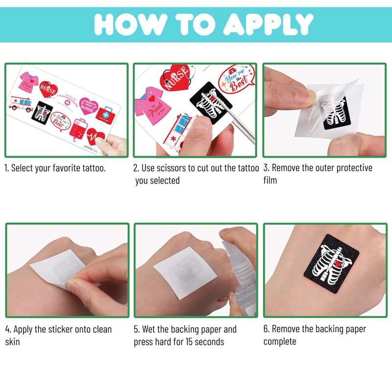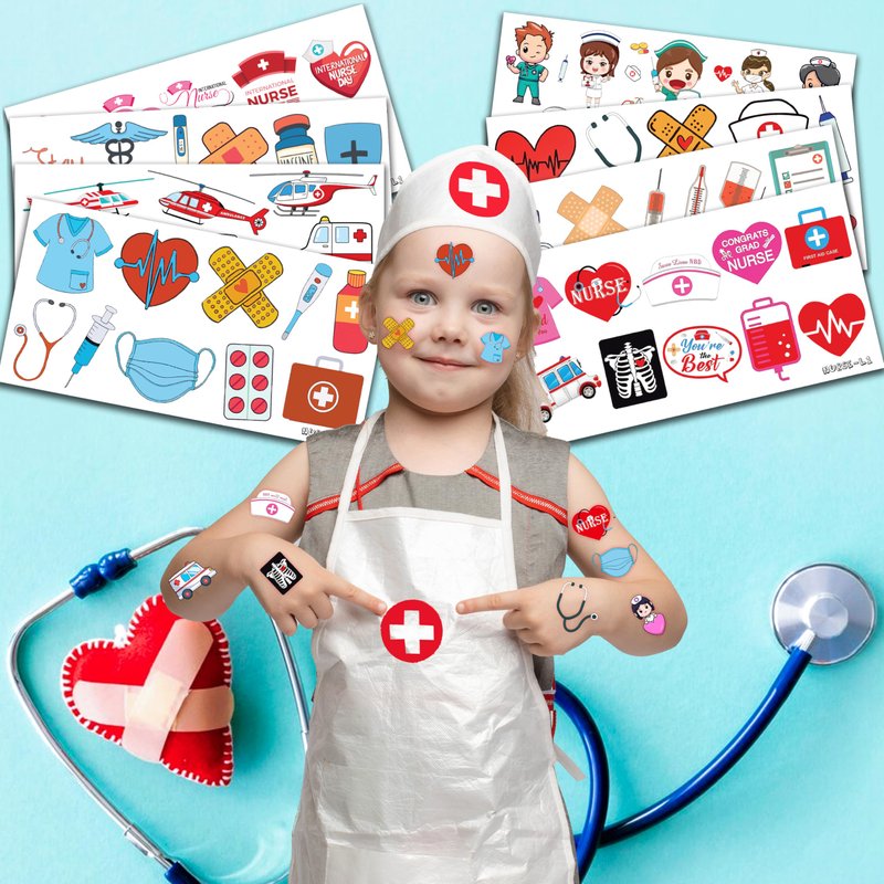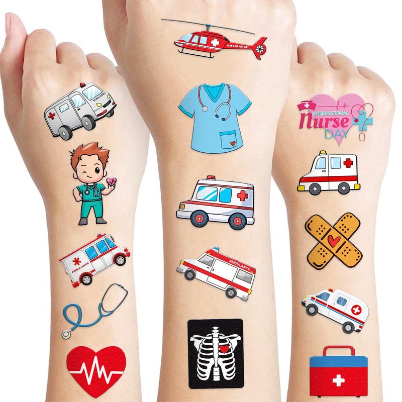 - ❤️🩹 FUN GIFT FOR NURSE BIRTHDAY PARTY DECORATIONS SUPPLIES: NURSE TATTOOS for themed party, outdoor parties, birthday parties, school rewards and other party events. NURSE TATTOOS are also interesting and lovely gifts for your children. In addition, they help children understand more about the nurse profession, and be more proud of nurse. Complement your unique collection with a nurse tattoo!