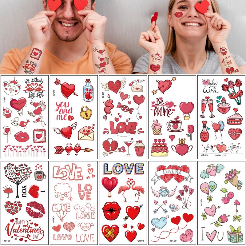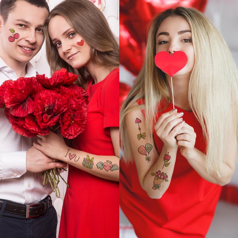 - Love valentines day party: These temporary tattoos are a perfect way to add a touch of romance to any occasion with their red-shaped designs.The designs include hearts, shattered glass, origami, love, harmony, romantic partnerships, and Valentine's Day. With these tattoos, you can confidently express your romantic side and create a memorable experience