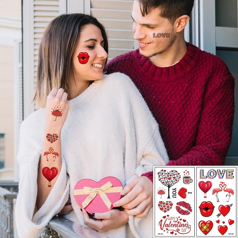 - These temporary tattoos are a perfect way to add a touch of romance to any occasion with their red-shaped designs.The designs include hearts, shattered glass, origami, love, harmony, romantic partnerships, and Valentine's Day. With these tattoos, you can confidently express your romantic side and create a memorable experience