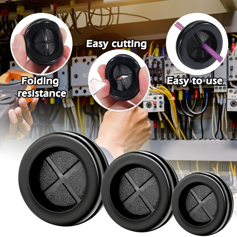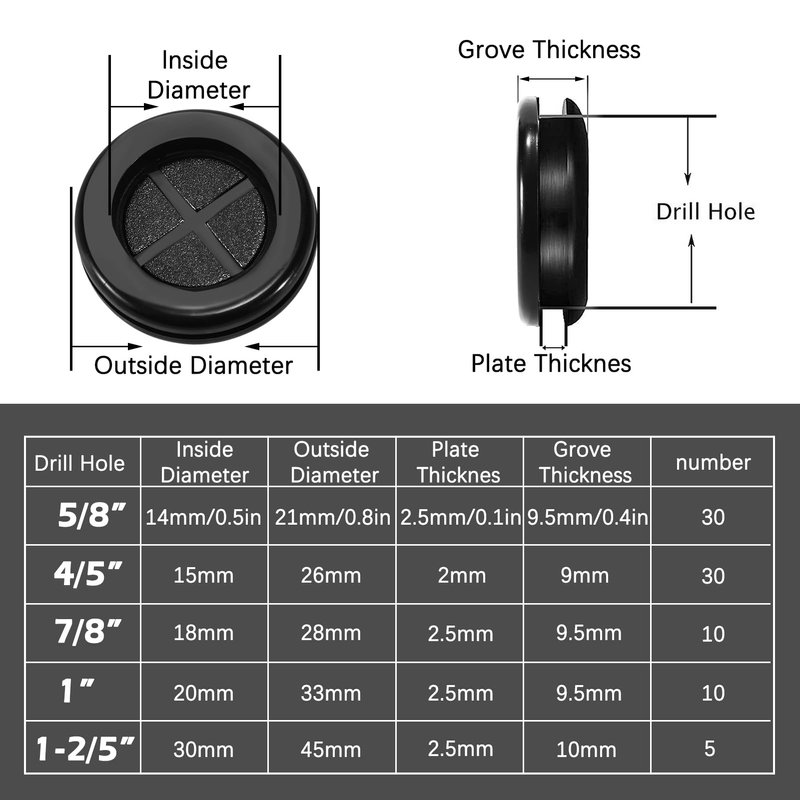 - 【EASY TO USE】Each rubber grommet is flexible and can be easily installed according to the thickness of the cable. The diameter of the rubber plug can be freely cut, and the rubber grommet can be easily snapped directly into the drill hole.