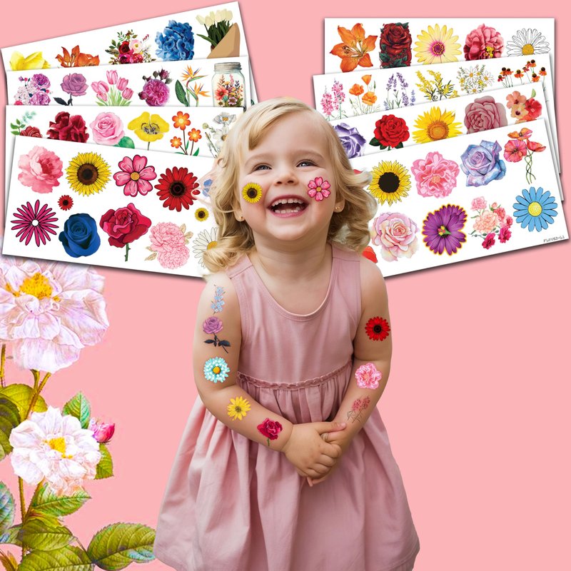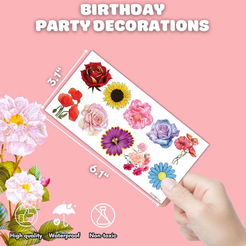 - 🌹 FUN GIFT FOR FLOWER BIRTHDAY PARTY DECORATIONS SUPPLIES: FLOWER TATTOOS for themed party, outdoor parties, birthday parties, school rewards and other party events. In addition, they help children recognize flower, closer to plant. FLOWER TATTOOS are also interesting and lovely gifts for your children. Complement your unique collection with a flower tattoo!