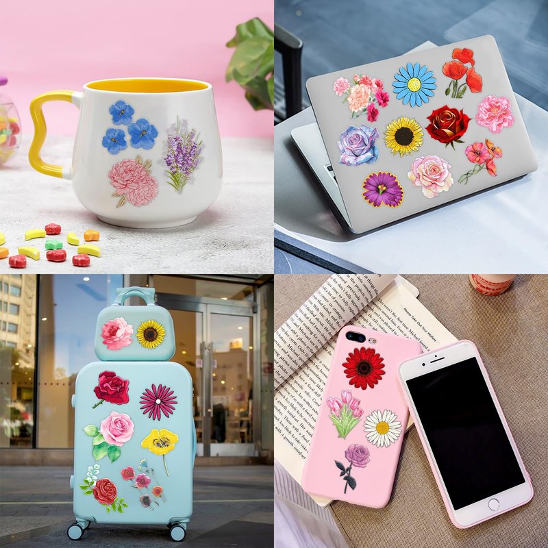 - 🌹TATTOOS FOR FLOWER THEMED DECORATION: Flower tattoos for people who love flower. Featuring 8 sheets with 86 pcs of lovely, fun and colorful design: Rose, daisy, sunflower... Each sheet measures 6.1 * 3.1 inches. You can temporarily tattoo them on your body or objects such as phones, bottles, laptop…