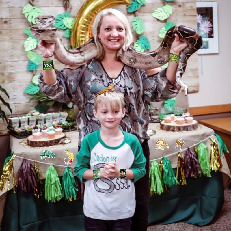 - Reptile Party Supplies: Each of the reptile party favors slap bracelets length about 8.67 inches/ 22 cm , and its width is about 1.18 inches/ 3 cm; Reptile sticker measure about 4-6cm/2-3 inches each, No random delivery and no duplicates, the pattern is shown in the main picture will appear in your package