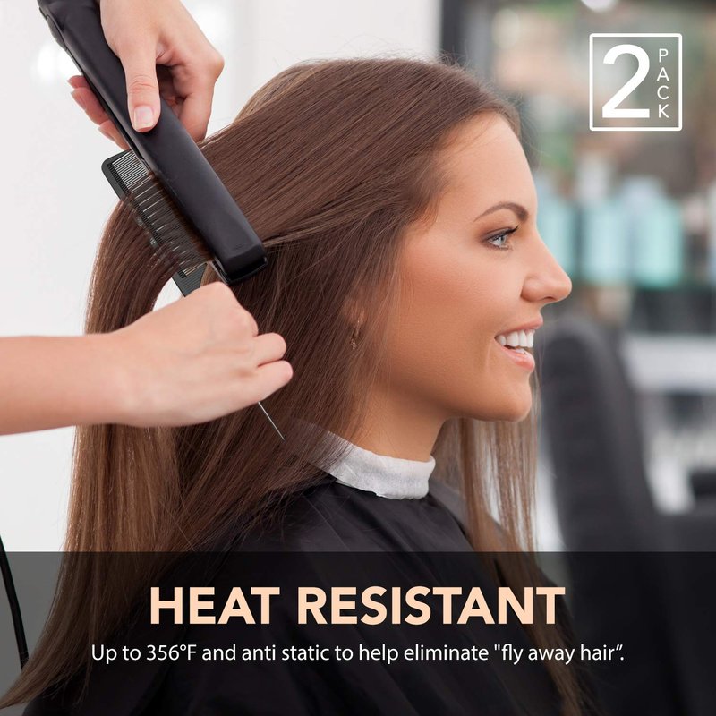 - CHEMICAL AND HEAT RESISTANT: Unlike plastic combs that melt when exposed to high temperatures, Our carbon fiber combs are heat resistant up to 356°F (180°C) These combs are also chemical resistant and anti static to help eliminate "fly away hair"