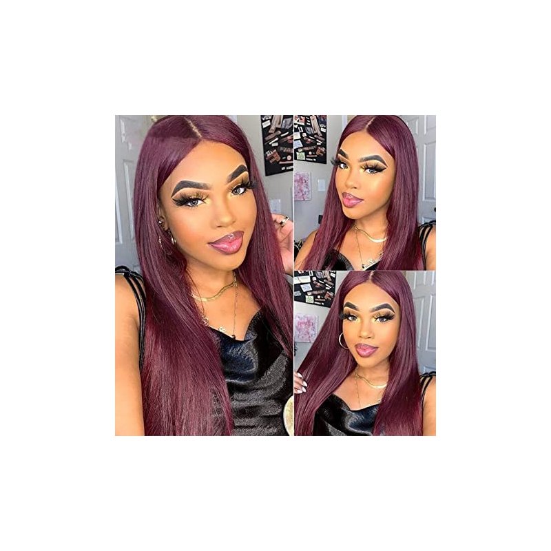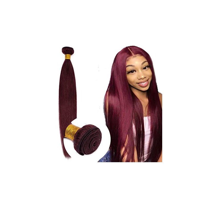 8A Brazilian Virgin Hair 99j Burgundy Straight Hair Weaves Bundle Free Part Red Wine Color 100% Unprocessed Human Hair Weft Weaves (20 INCH)…… B0BWXMLRM9