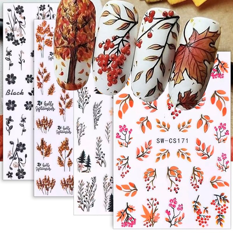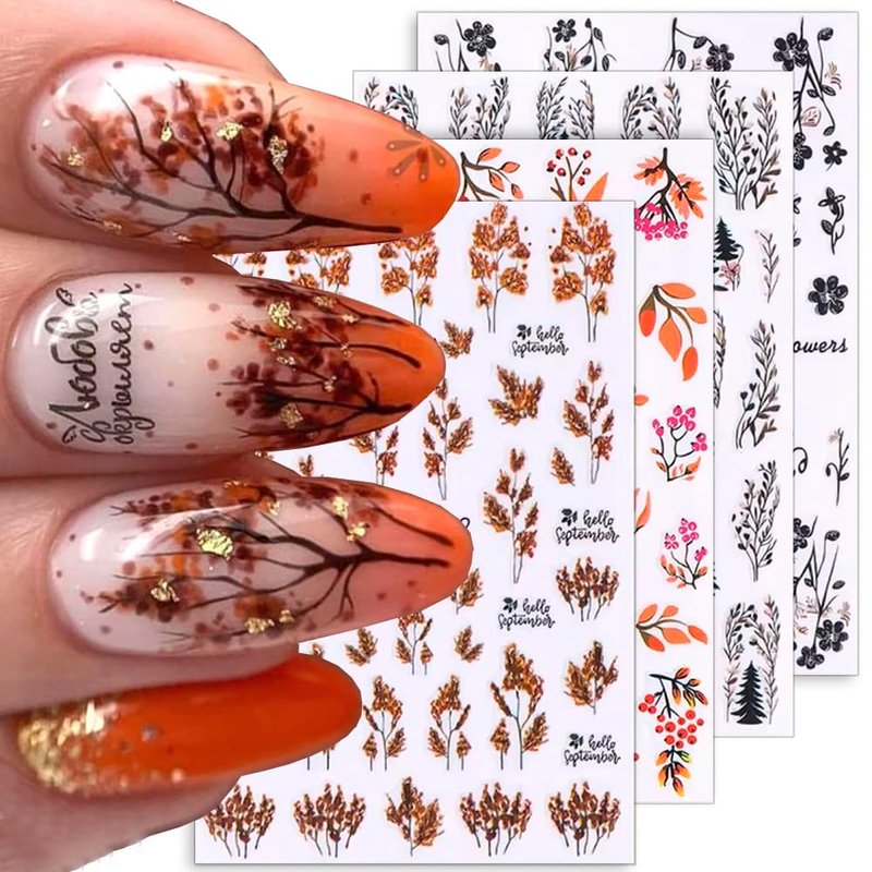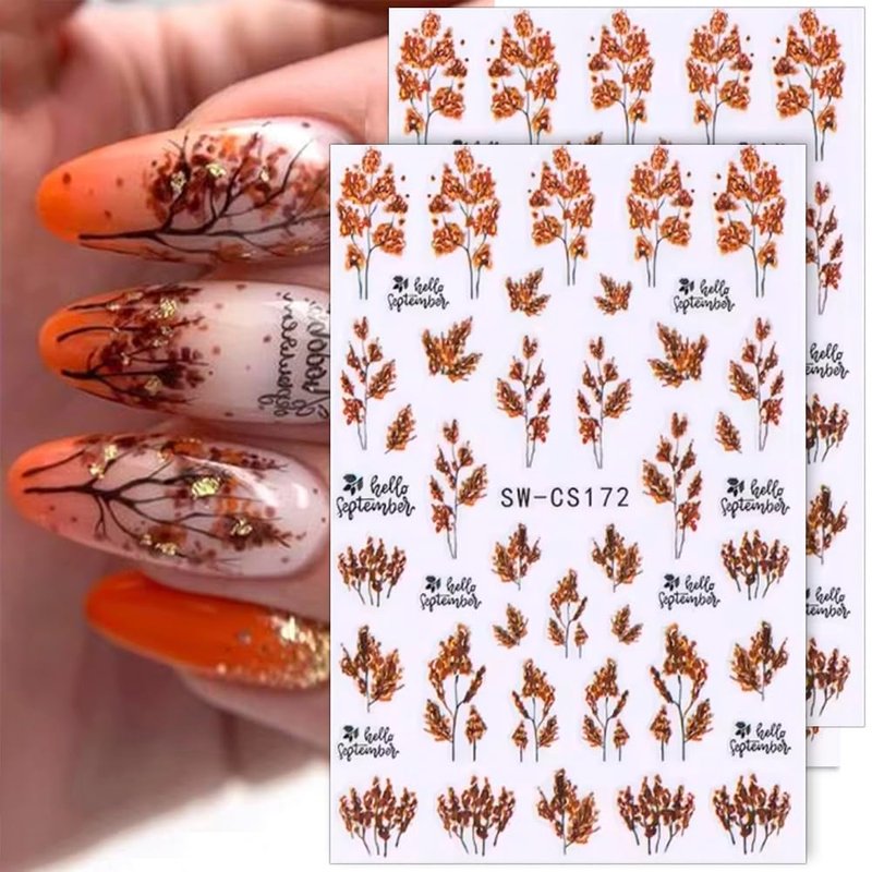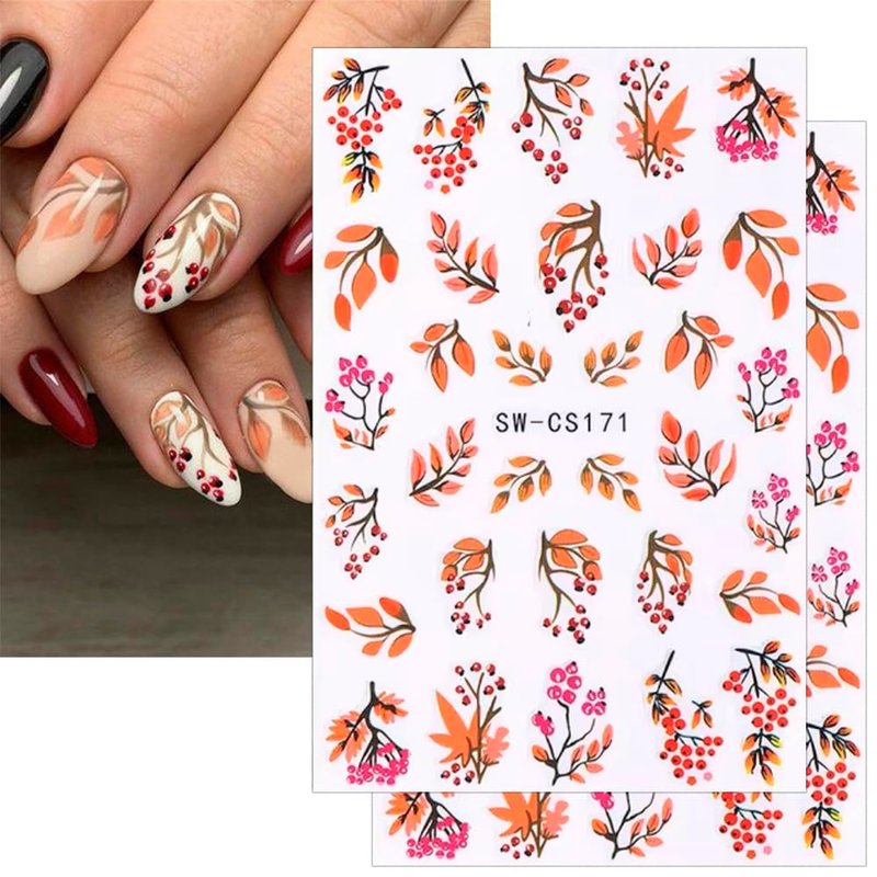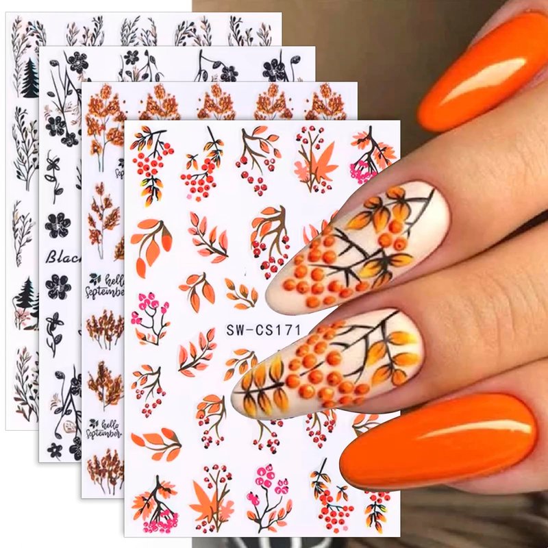 - 8pcs 3D Fall Leaves Nail Art Stickers Cartoon Fall Nail Stickers for Nail Art Supplies Maple Leaf Flower Nail Decals Autumn Decor Nail Sticker Nails Stickers Women Nail Design Stickers for Nails