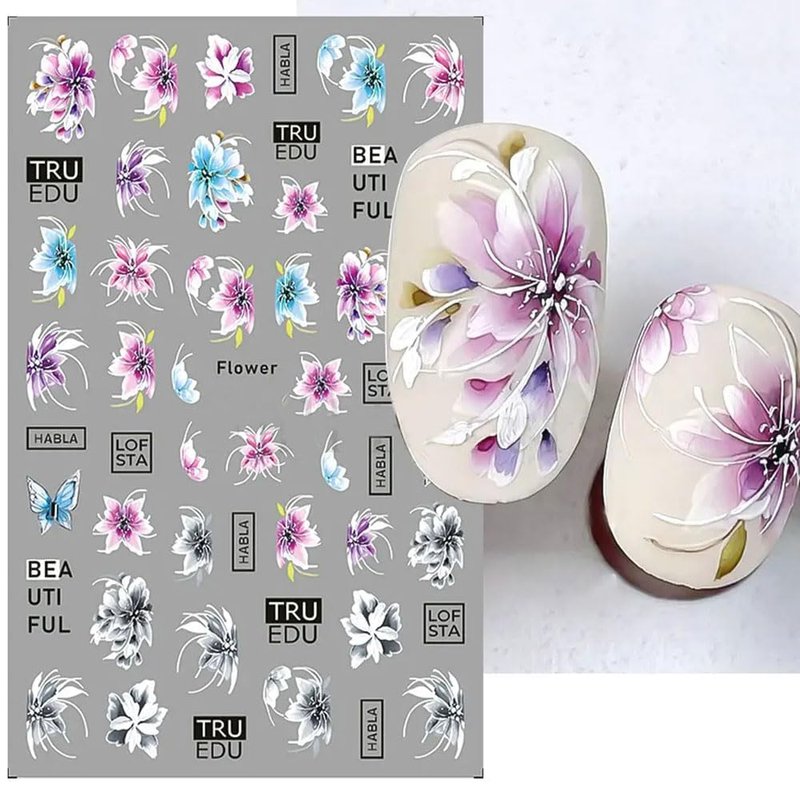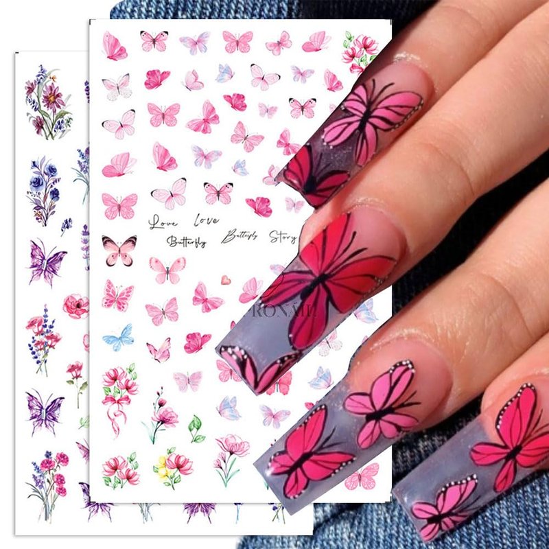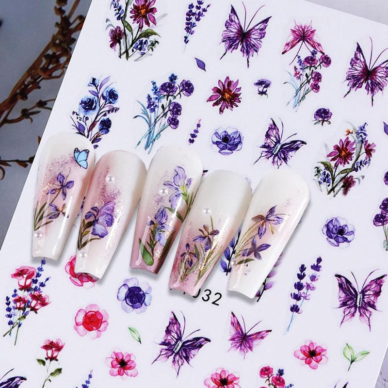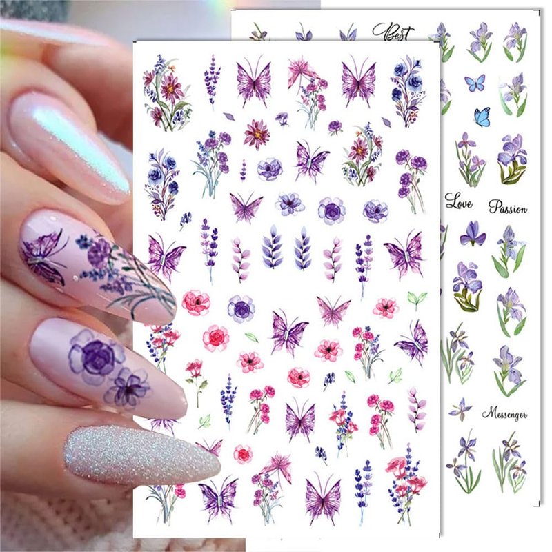 - 8pcs 3D Flower Nail Stickers Colorful Butterfly Nail Art Stickers Floral Nail Decals for Nail Art Supplies Cherry Blossom Nail Sticker Tulip Lavender Spring Nails Stickers Flower Stickers for Nails