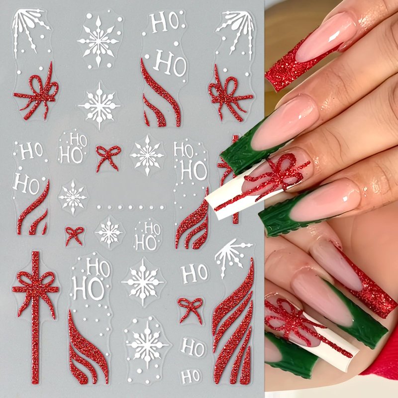 Colorful Christmas Snowflake Nail Stickers Decals Self-Adhesive Santa Hat Design 5D Nail Decals Bow Gift Box Nail Supplies Decorations Accessories Gift Kit.