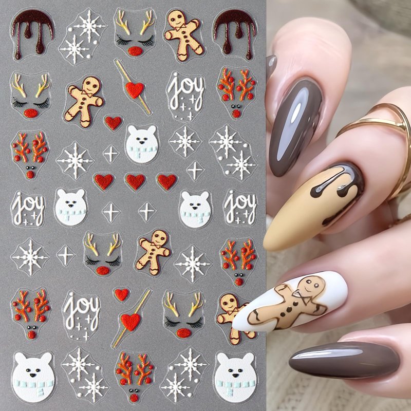 8PCS Christmas Nail Art Stickers Decals Winter Snowflake 5D Micro-Embossed Santa Hat Nail Decals Self-Adhesive Gingerbread Man Nail Design Nail Supplies Holiday Nail Stickers for Nail Decor for Women