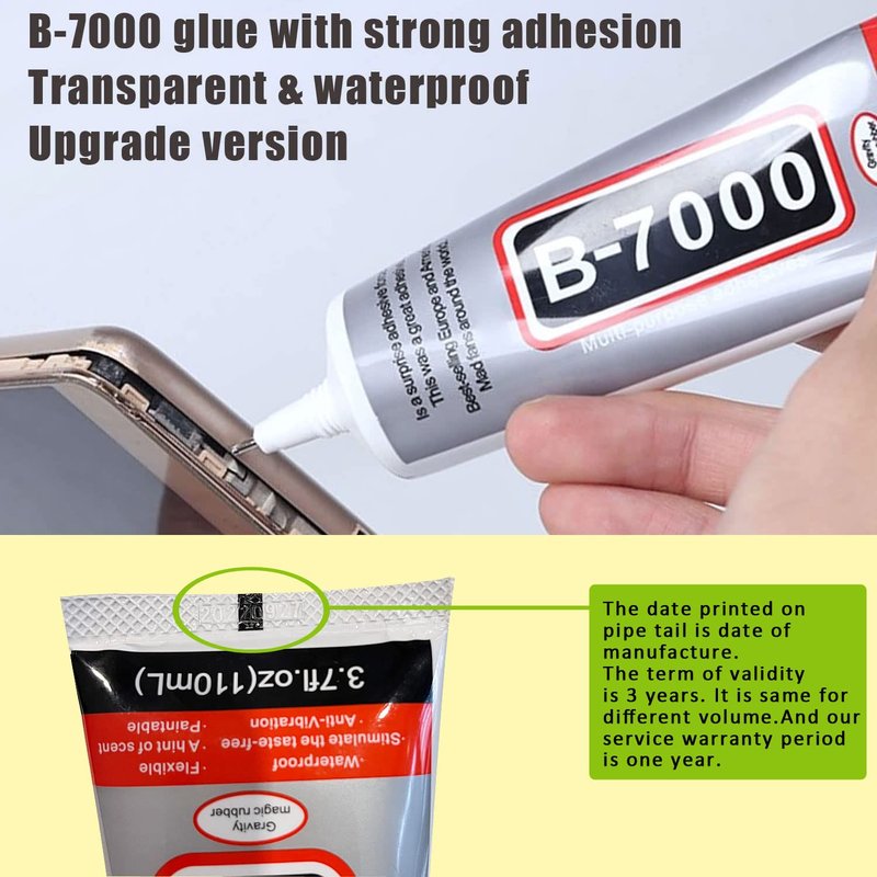 - Convenient to Use - Clean the surface, after the surface is evenly coated, press or clamp the product. The surface drying time is 5-10 minutes, the complete curing time is 24 hours, the optimal curing time is 48 hours, and the hardness after curing is 65-80a. Semi-transparent floating body Solid Content: 30%-35%.Warm Tips: Keep the B-7000 super glue away from the children. The date printed on pipe tail is date of manufacture. The term of validity is 3 years. It is same for different volume.