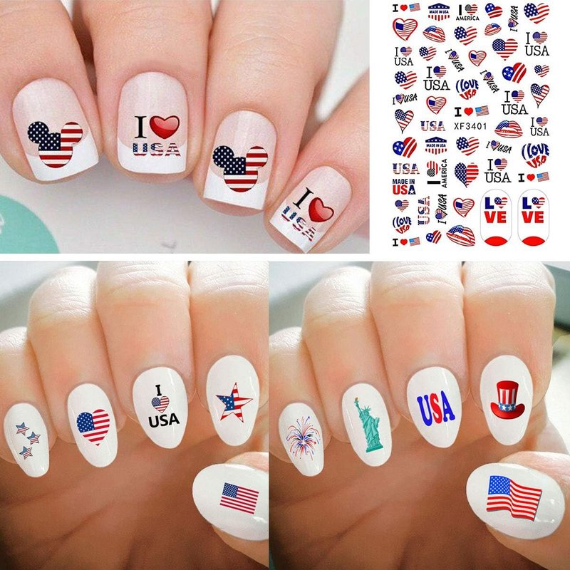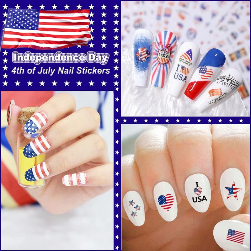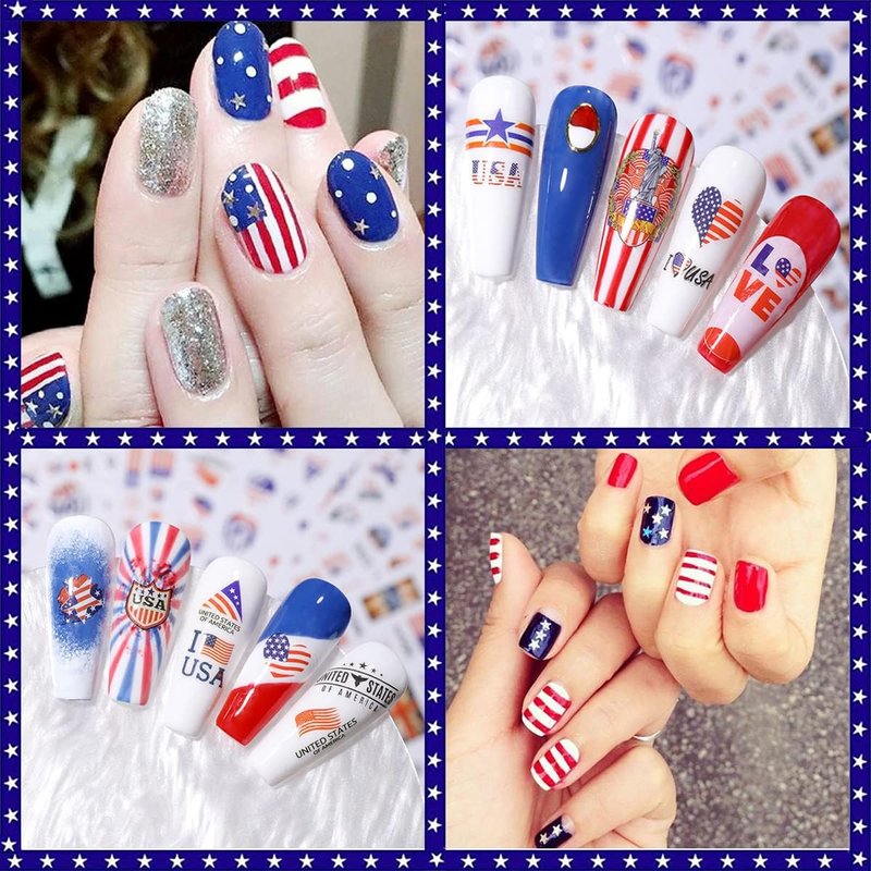 - 🔥Easy to use: Lots of different July 4 Nail Art Stickers designs for you to choose to fit natural or false nails, toenails, or nail tips. A self-adhesive design nail sticker is the most convenient way to decorate nails.