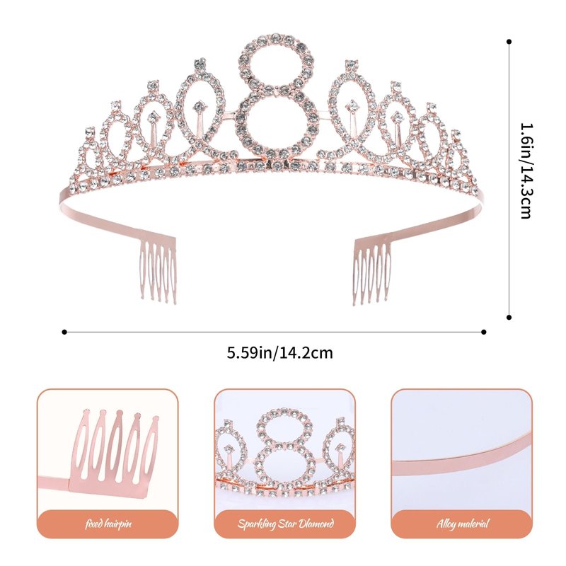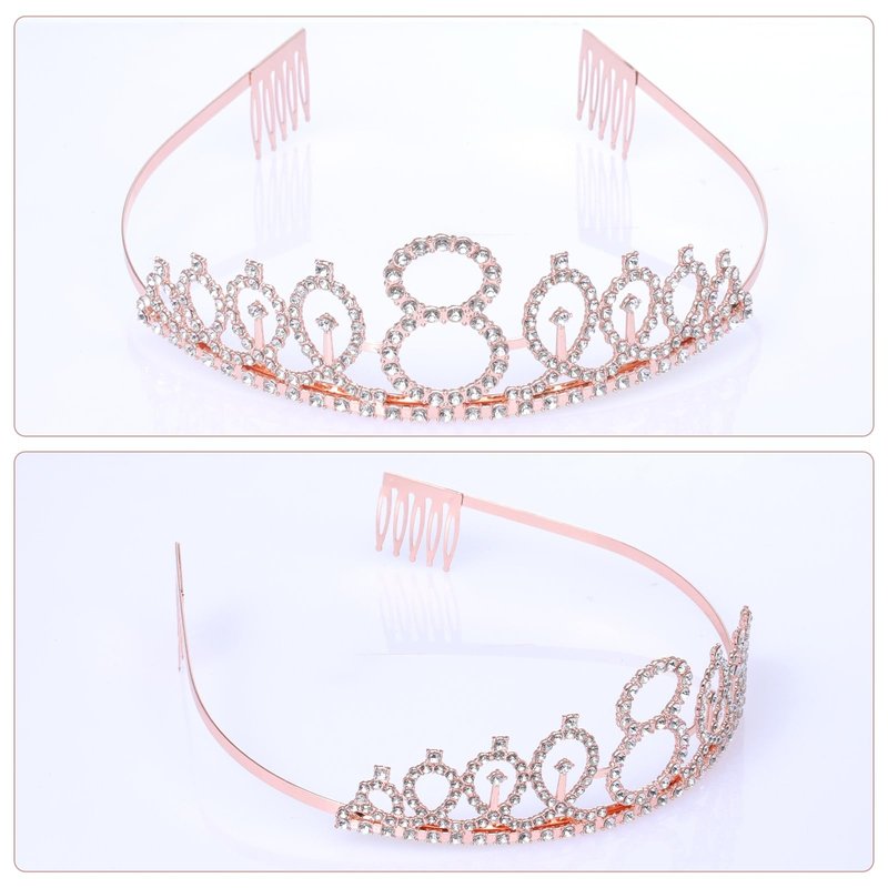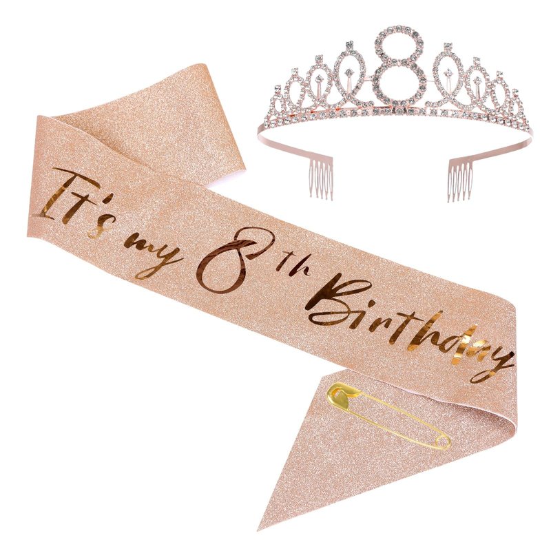 8th Birthday Sash and Tiara Set Rose Gold Birthday Sash Crown Birthday Party Favors Supplies for Birthday Party