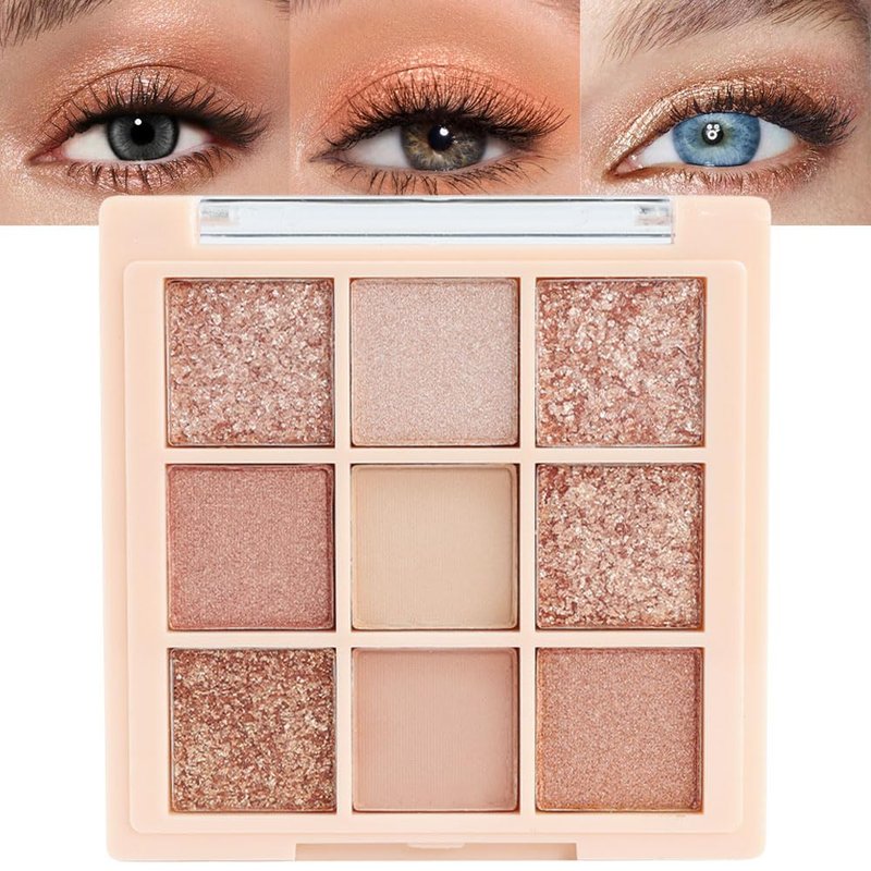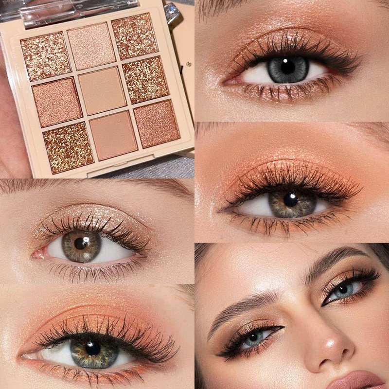 9 Color Nude Champagne Gold Rose Gold Colorful Glitter Eyeshadow Palette Makeup,Korean Natural Neutral Rainbow Eyeshadow palettes Highly Pigmented Naturing-Looking Long Lasting Waterproof Blendable