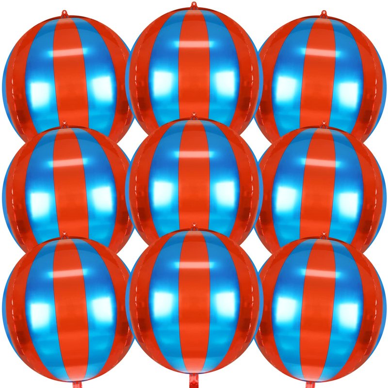 9 Pack Circus Balloons - LIYDE Carnival Decorations Circus Theme Party Decorations Circus Decorations 22 Inch 360 Degree 4D Carnival Balloons (Blue and Red)