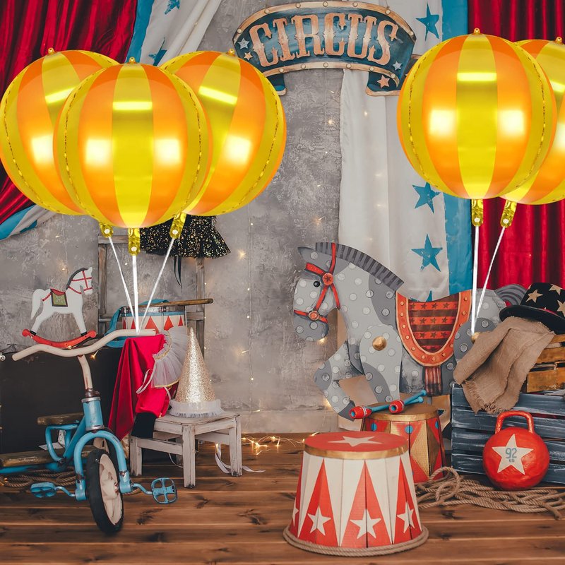 9 Pack Circus Balloons - LIYDE Carnival Decorations Circus Theme Party Decorations Circus Decorations 22 Inch 360 Degree 4D Carnival Balloons (Yellow and Orange)