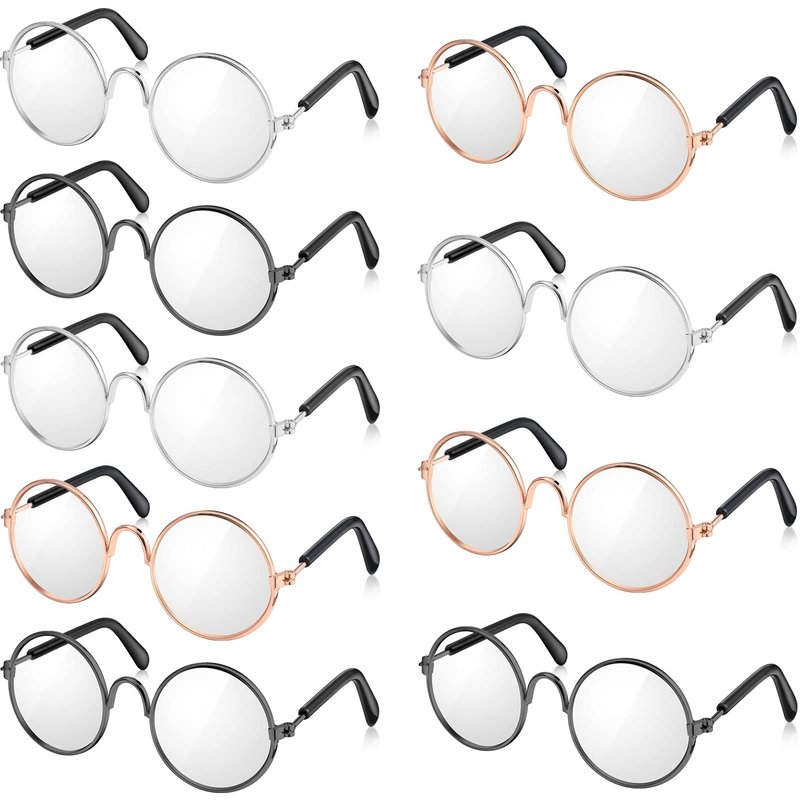 9 Pairs Doll Glasses Metal Wire Rim Clear Lens Eyewear Fabric Doll Dress Up Eyeglasses Mini Dolls Costume Accessories for 8 Inch Doll and Plush(9 Pcs 3.74 Inch, Fits for 18 Inch Doll and Dog)