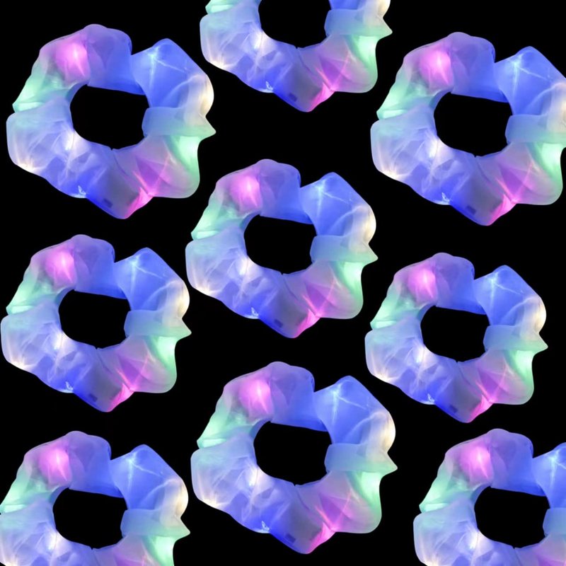 - Premium Material: These light up hair scrunchies are made of gauze fabric, smooth surface does not hurt the hair, and the sense of perspective is very good, can perfectly show the colorful led light,they will be wonferfull glow in the dark hair accessories and rave party supplies.