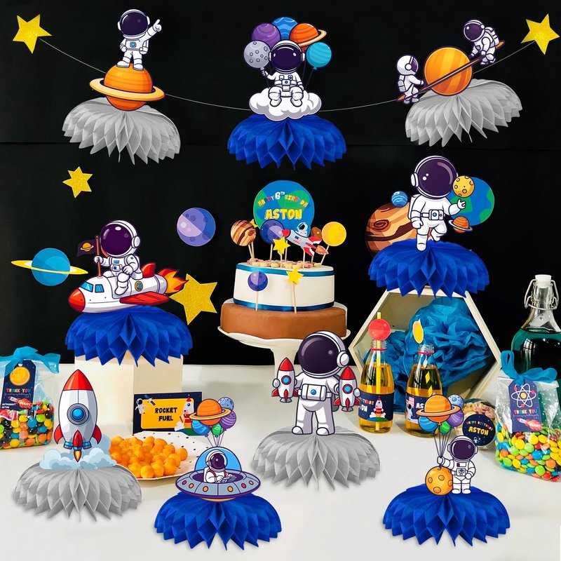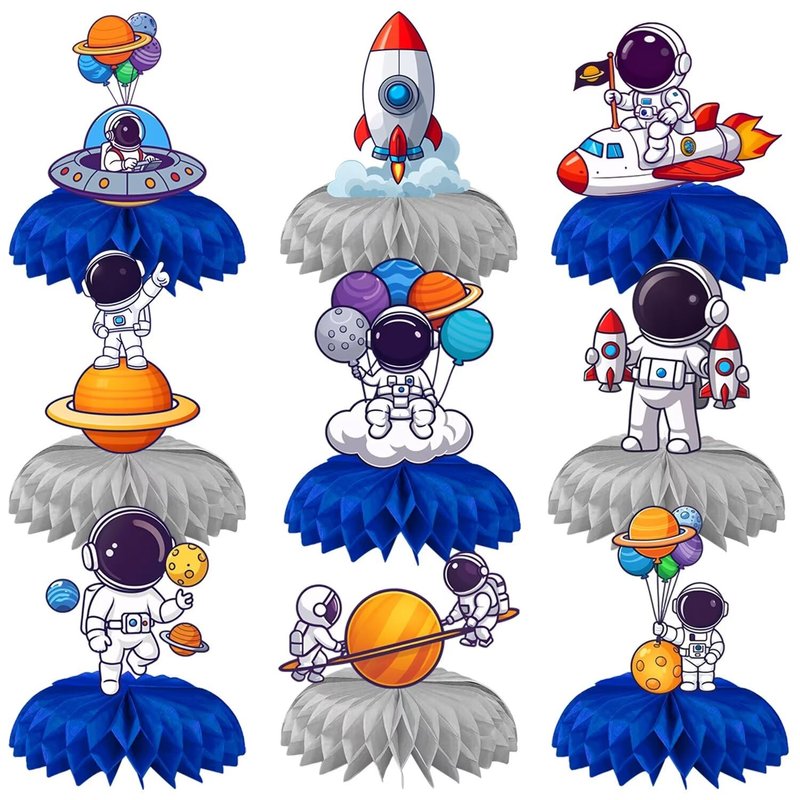 - Space Centerpieces: You will get 9 pieces of space decorations. These space birthday party decorations are perfect for you to host an space party.