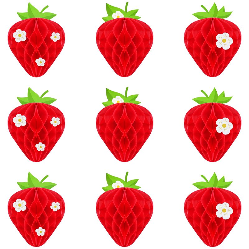 9 Pcs Strawberry Honeycomb Balls Strawberry Birthday Party Supplies Favors Strawberry Table Centerpieces Tissue Paper Honeycomb Tabletop Hanging Decors for Party Baby Shower