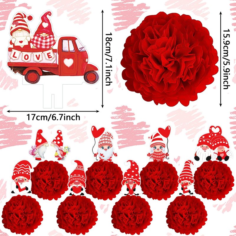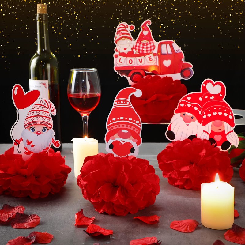 - Nice princess party decorations: the package contains 9 pieces gnome centerpieces for tables; The clusters of the flower look like wave of the sea, cute Valentine's Day gnome card topping on the flower seems like swimming in the sea, what a charming and attractive scene; Beautiful supplies for most Valentine's Day gnome theme parties