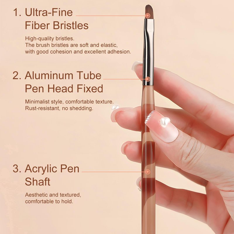 This 9-piece Nail Brush Set is a perfect blend of form and function for enthusiasts and professionals alike. Each set includes brushes in 9 distinct sizes, tailored to create a myriad of nail art designs like lines, flowers, swirls, and detailed patterns. Crafted from high-quality fiber, the brushes maintain their shape without deformation, ensuring precise application with both regular nail polish and gel. The robust metal tube construction ensures the brush tip and body remain securely connected, promising durability and longevity. Designed for a wide range of applications, these brushes are ideal for creating intricate designs, filling colors, and achieving professional swirling and blending effects. The lightweight design and easy-to-clean bristles make them a user-friendly choice for both nail art hobbyists and seasoned salon professionals. For optimal performance, initial soaking in hot water is recommended to remove sealing wax, and proper cleaning post-use ensures the brushes maintain their finesse.