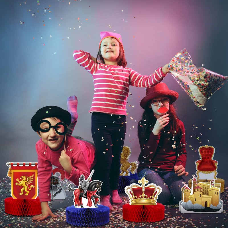 - Easy to Assemble: these medieval party honeycomb centerpieces take just minutes to assemble, you just peel off the stickers and attach them to the card, unfold the bottom of the middle section, and you'll have cool medieval party decorations