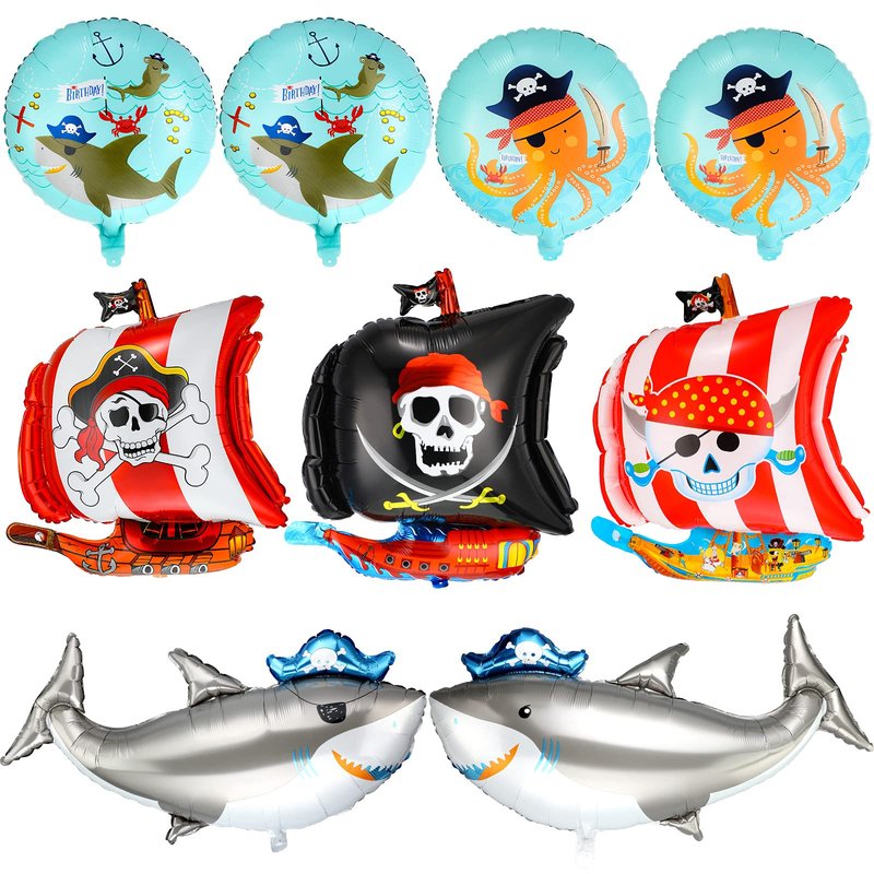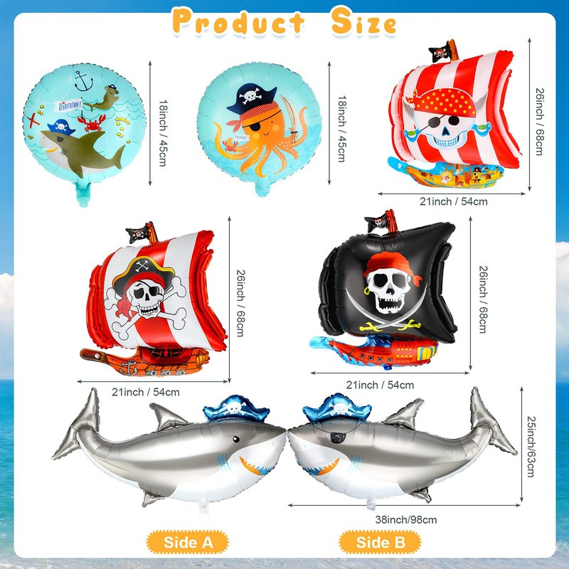 - Package include: you will receive 9 pieces pirate theme foil balloons, including 3 different style pirate ship shape foil balloons, 4 pieces 18 inch round foil balloons, 2 pieces shark shape foil balloons, so many styles of balloons will meet your decoration needs and make your party full of fun